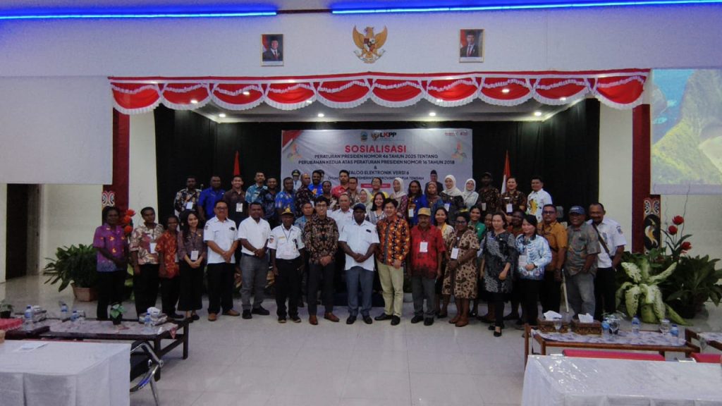 NABIRE – papuatengah.info – Mewakili Pemerintah Provinsi Papua Tengah Plt. Kepala Biro Pengadaan Barang dan Jasa Provinsi Papua Tengah Martinus Agapa, S.E. M.Ak.menutup secara resmi kegiatan Sosialisasi Peraturan Presiden (Perpres) nomor 46 tahun 2025 tentang Perubahan Kedua atas Peraturan Presiden nomor 16 tahun 2018 dan Katalog Elektronik Versi 6, Rabu (9/7) di Auditirium RRI Nabire .