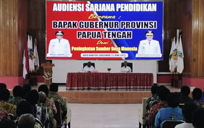 Audensi dengan Sarjana Papua Tengah itu merupakan ruang strategis bagi Pemprov Papua Tengah dalam menyerap aspirasi sekaligus memberikan arahan kepada para Sarjana Pendidikan yang mengabdi di daerahnya masing-masing.
